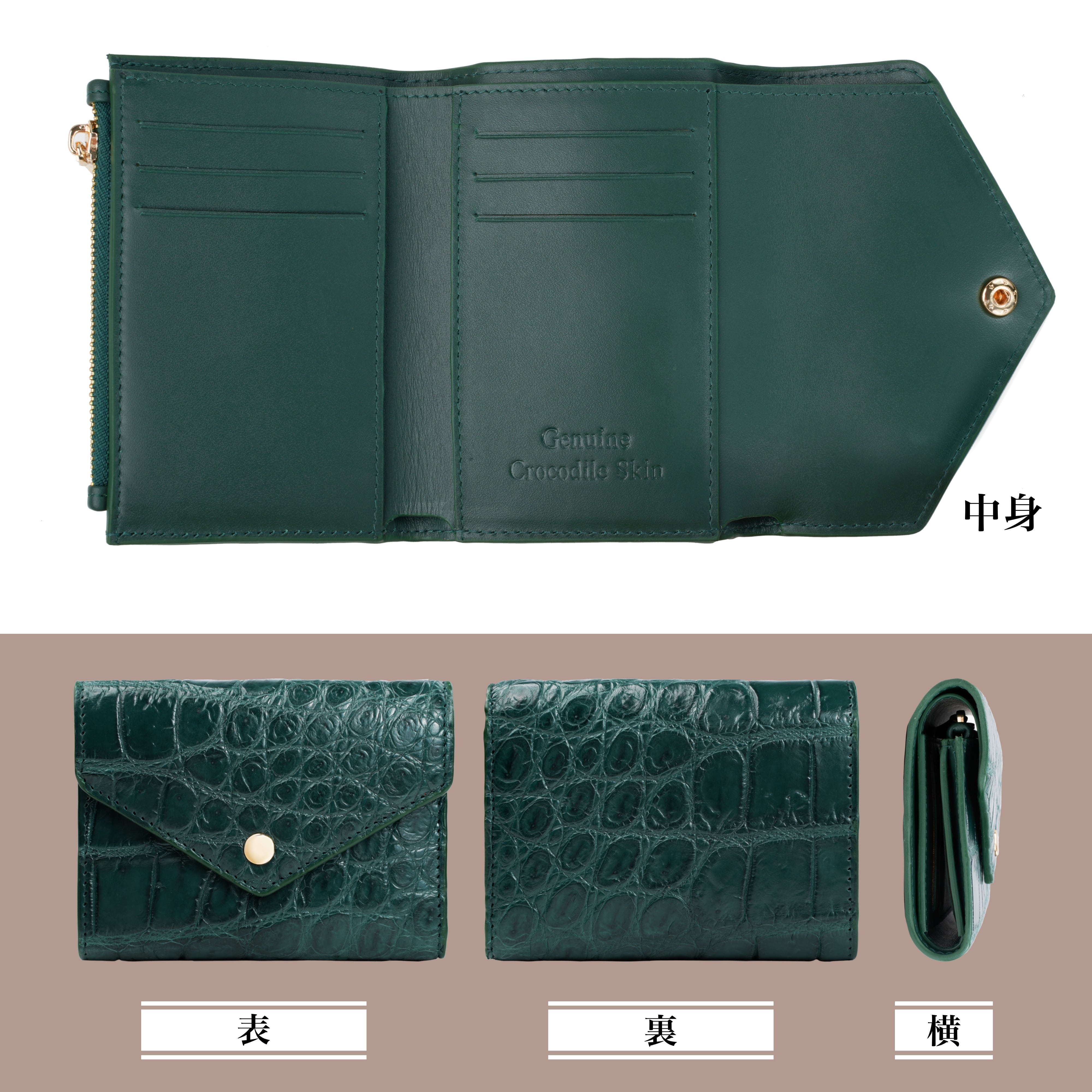 アイテム情報 【材質】 ・外側:クロコダイル革(腹) ・内側:牛革 + ポリエステル 【サイズ】 ・幅 9 cm.、長さ 12 cm.. 【仕様】 ・札入れ x 1 ・カード入れ x 6 ・ファスナー小銭入れ x 1