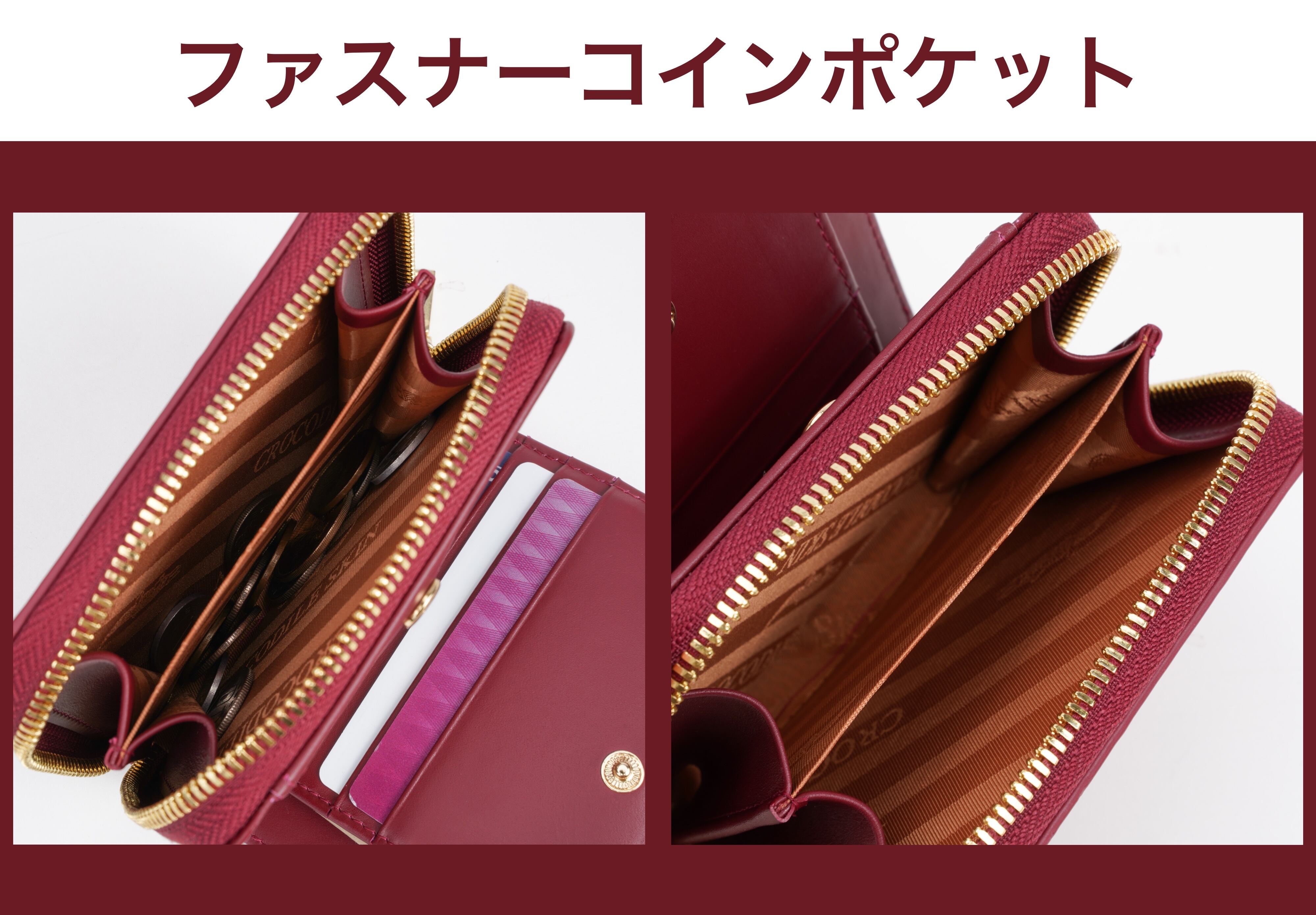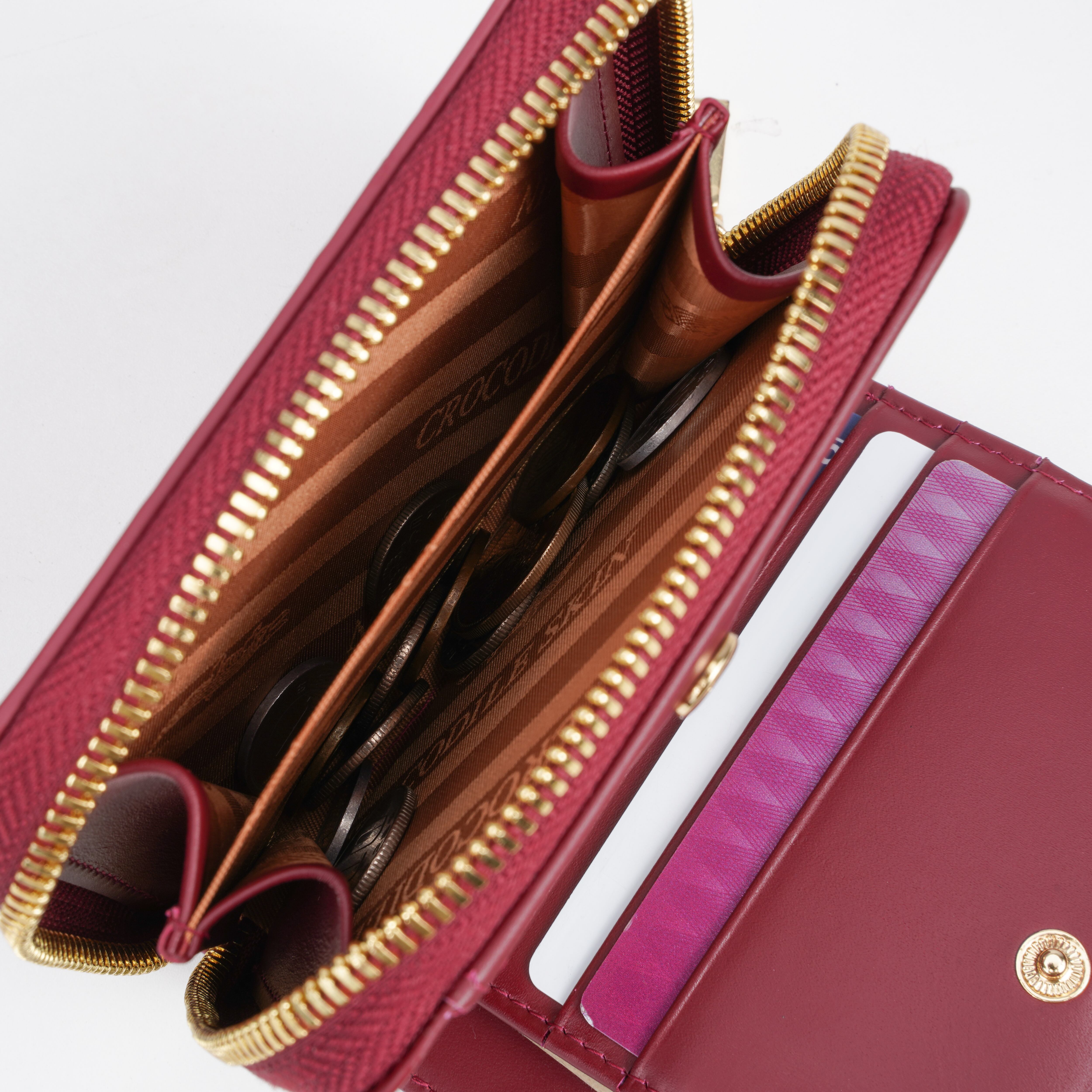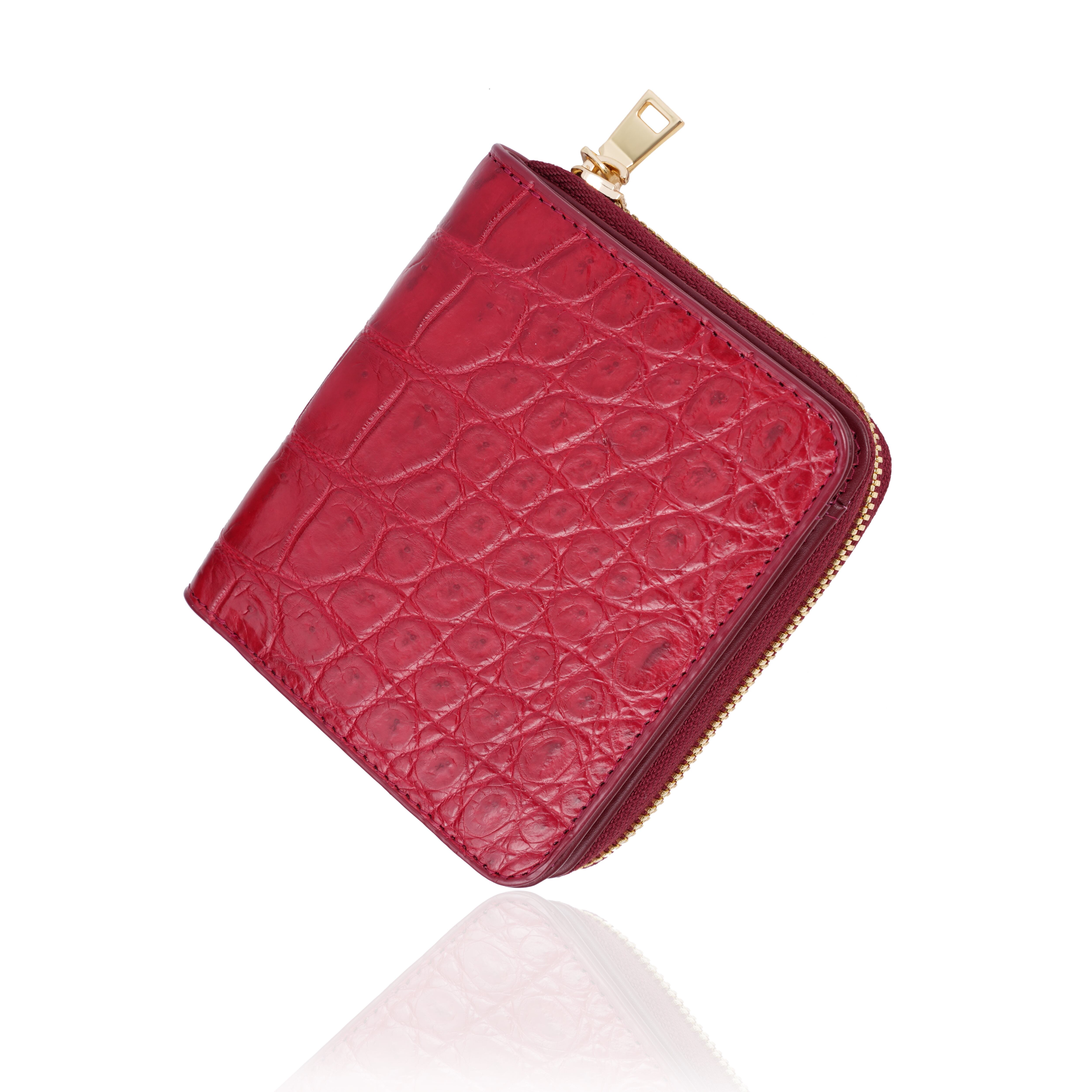 • クロコダイル ラウンドジップ ミニ財布 赤
