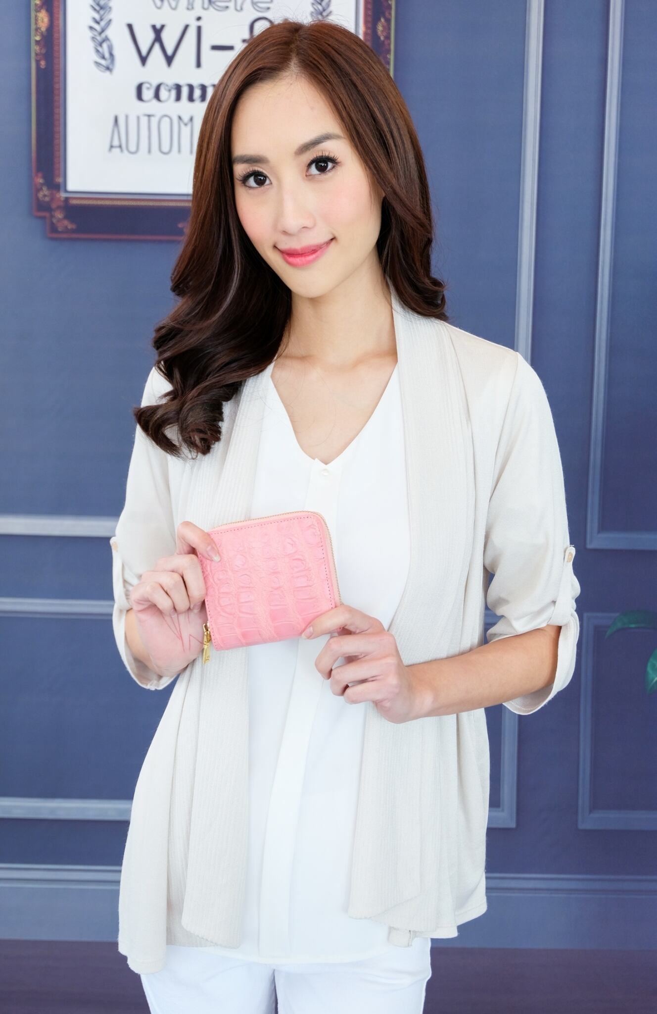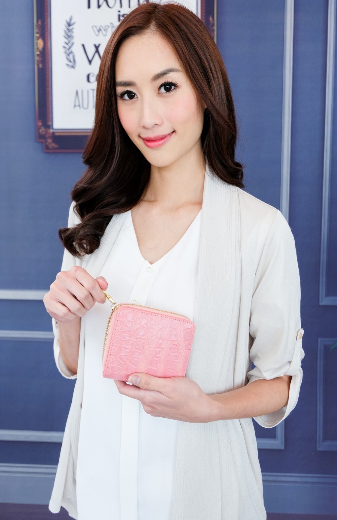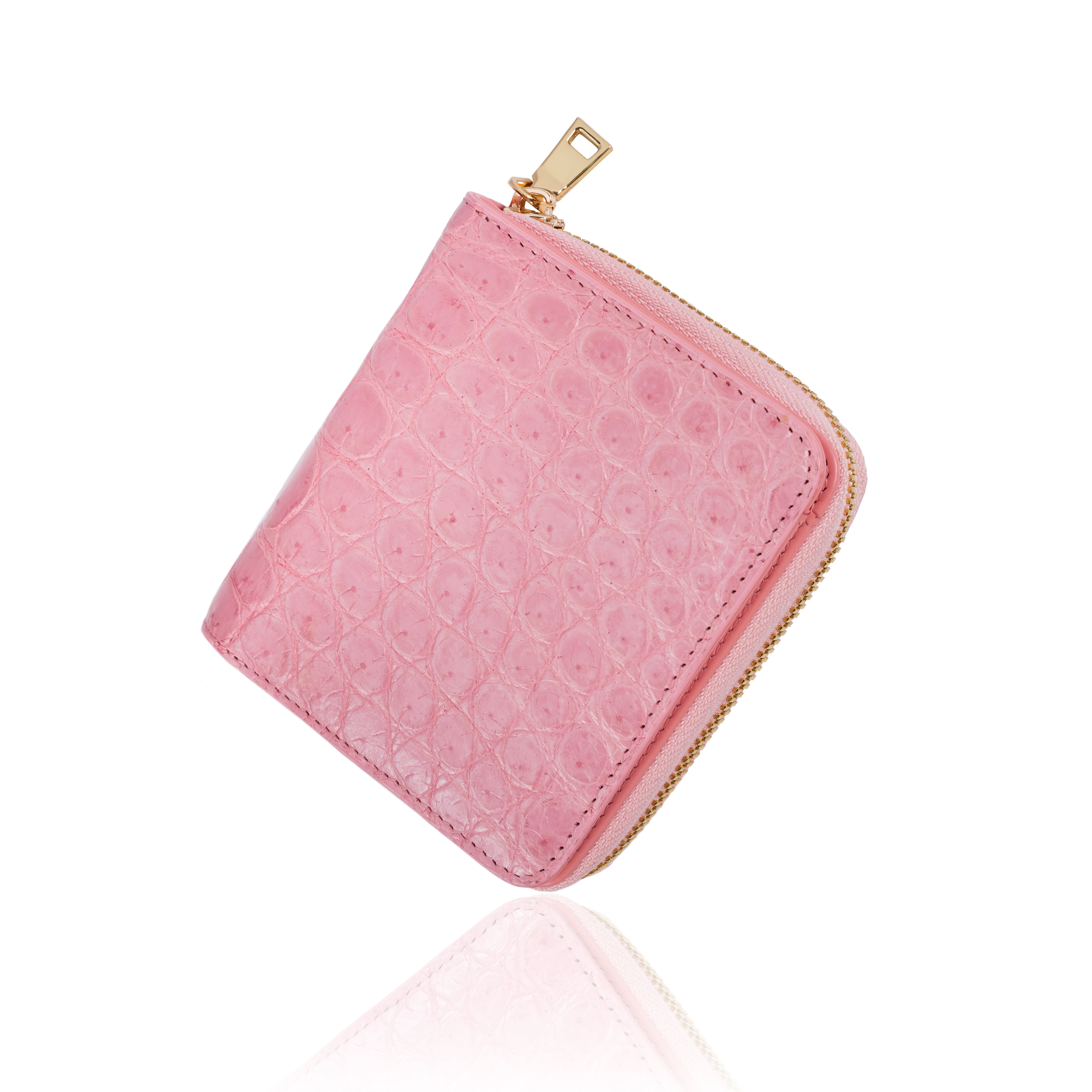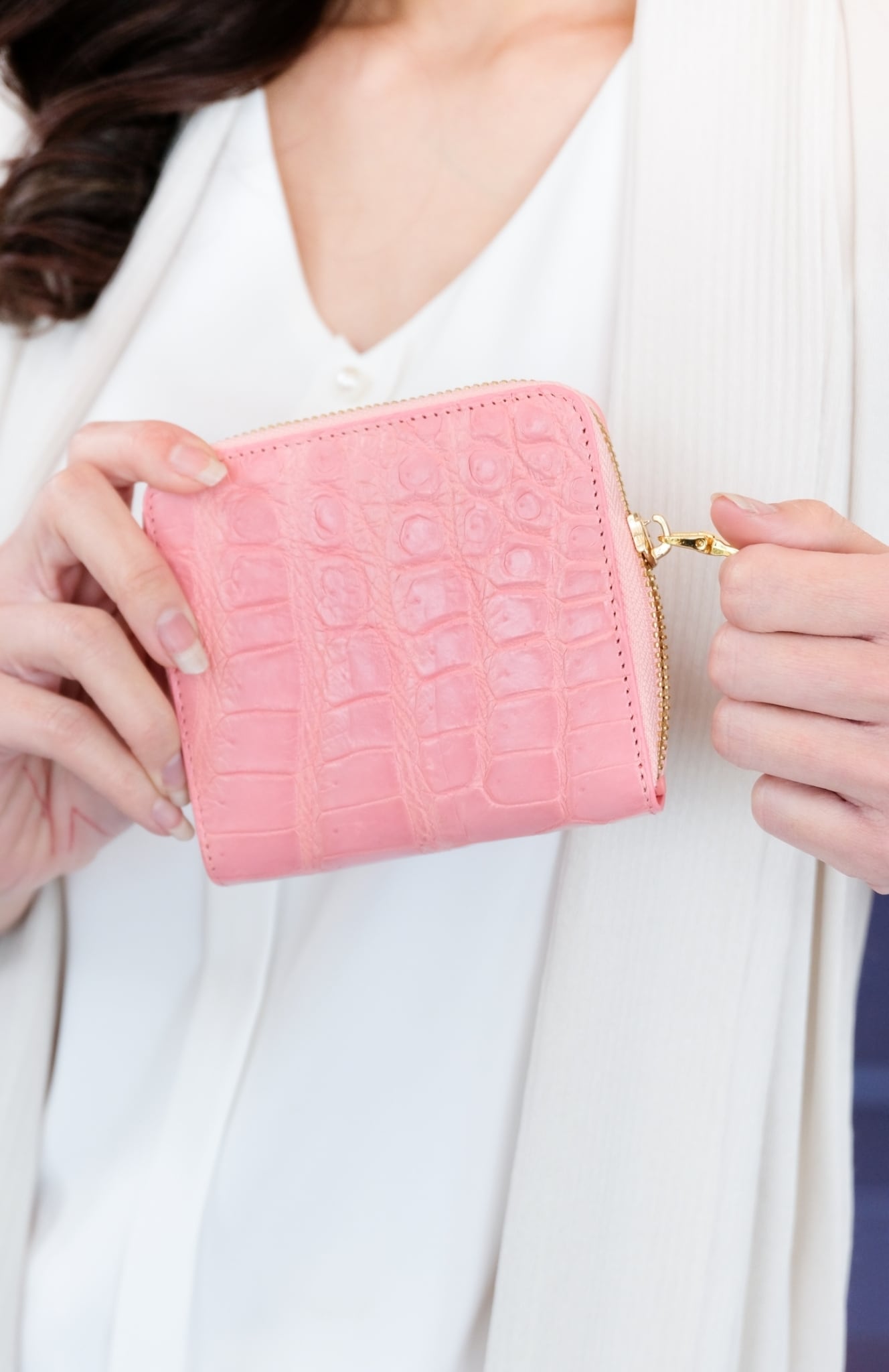 クロコダイル ラウンドジップ ミニ財布 ピンク