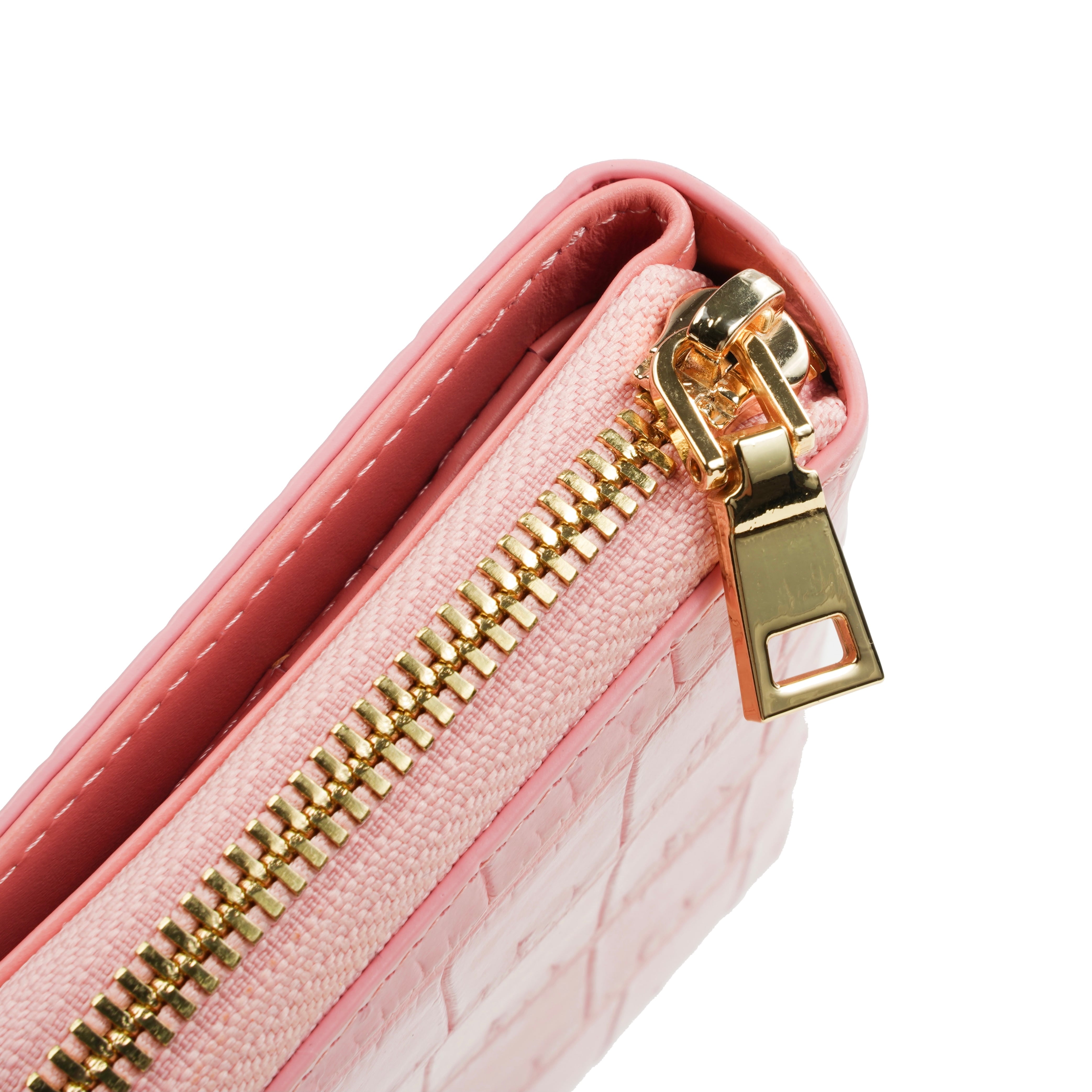 • クロコダイル ラウンドジップ ミニ財布 ピンク