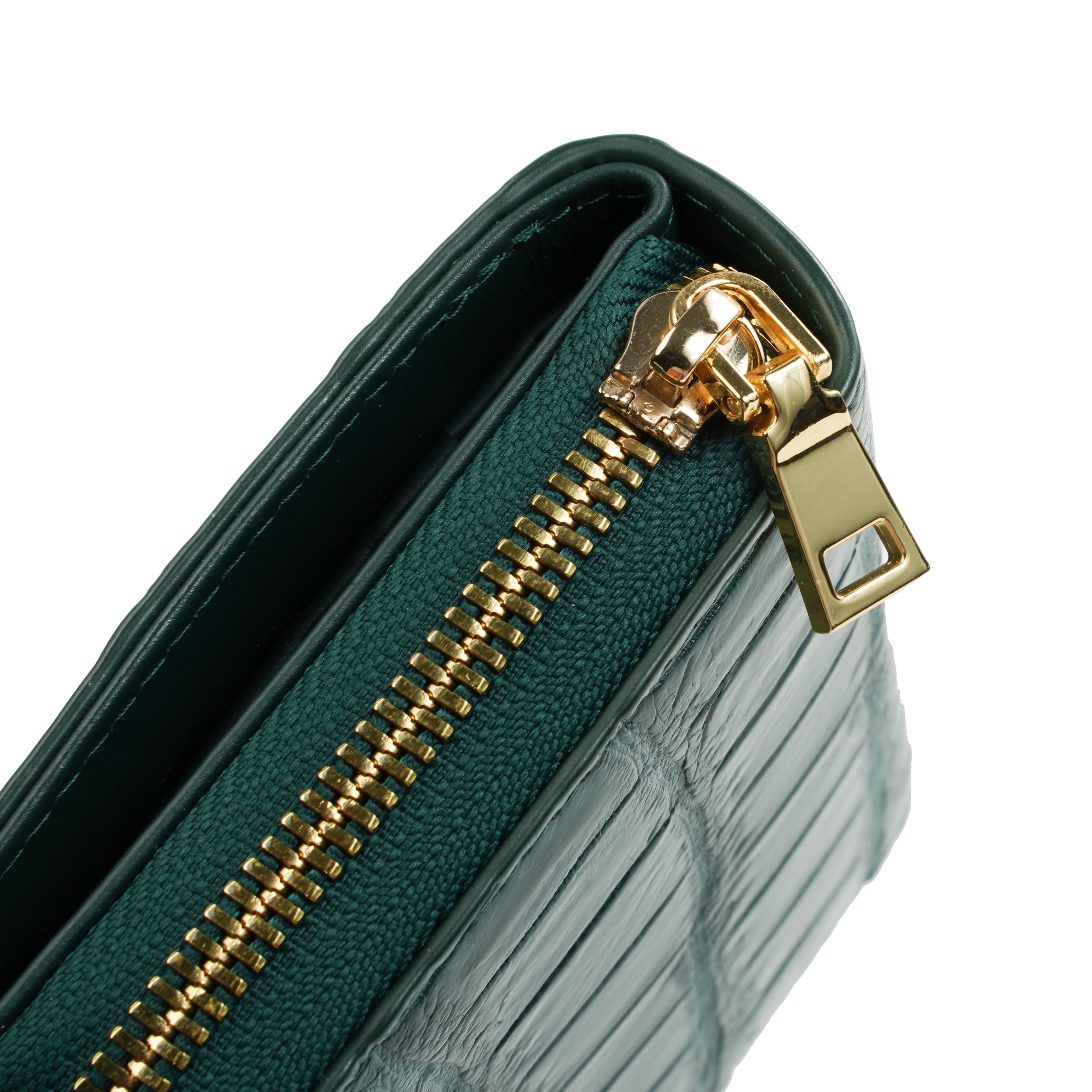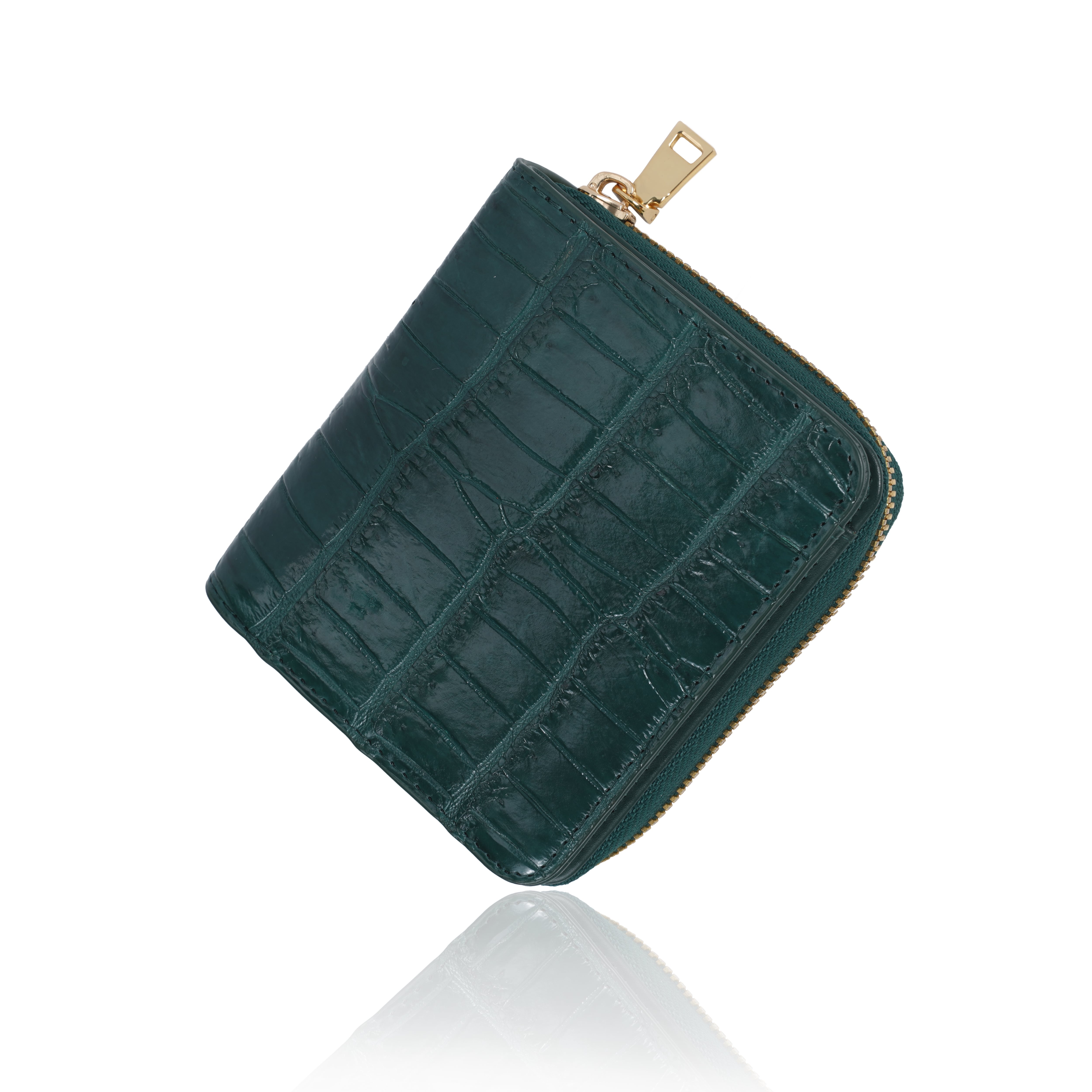 アイテム情報 【材質】 ・外側:クロコダイル革(腹) ・内側:牛革 + ポリエステル 【サイズ】 ・幅 10 cm.、長さ 11 cm.、厚み 3 cm. 【仕様】 ・札入れ x 1 ・カード入れ x 8 ・ファスナー小銭入れ x2