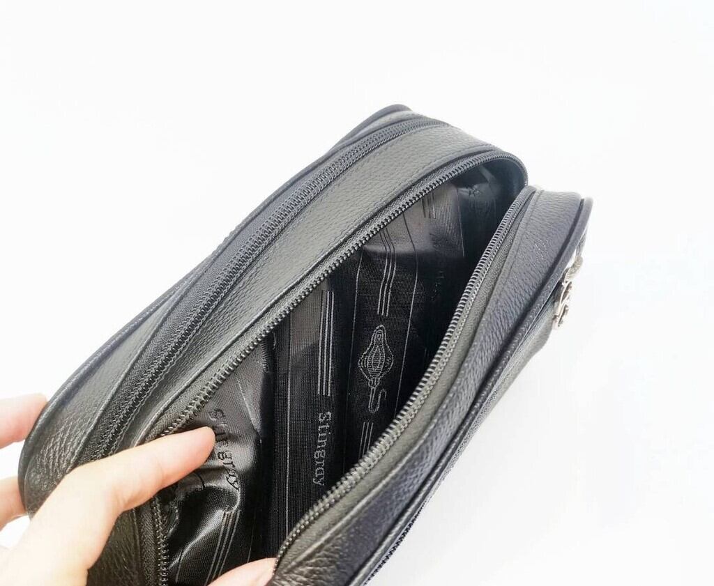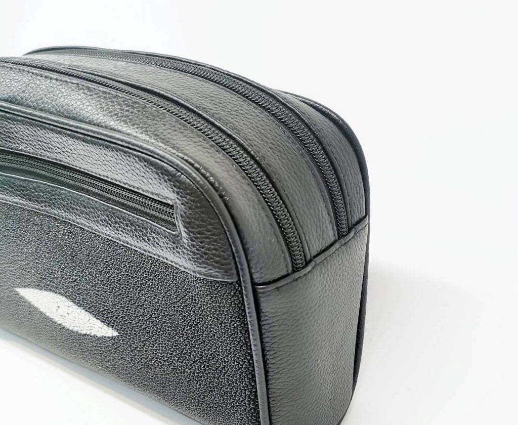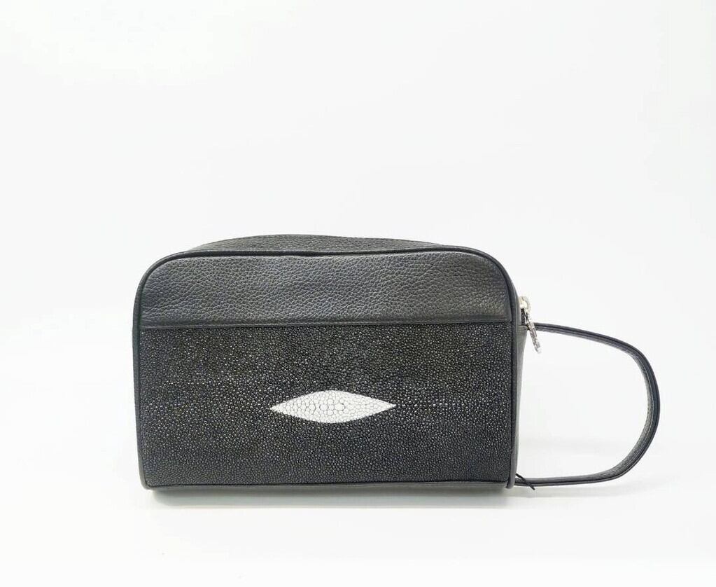 【サイズ】 幅 8 cm、長さ 23 cm、高さ 15 cm 【カラー】 黒 ・ ネイビー 【素材】 アカスティングレイ エイ革 牛革 【仕様】 ポケット x 2